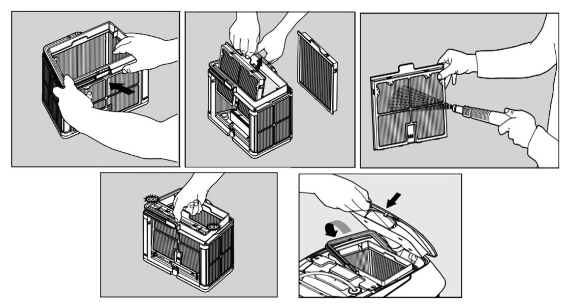 - Nettoyer tout simplement le panier filtrant avec un jet d'eau et le remettre en place.