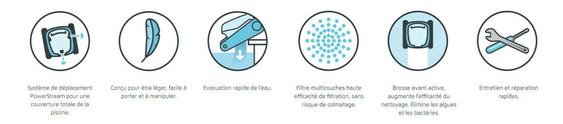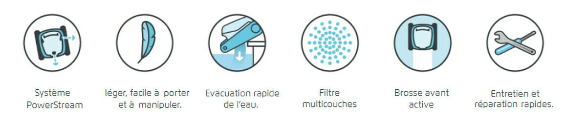La technologie PowerStream TM : Navigation et déplacement optimisés sur le fond, les parois et la ligne d'eau. Adhère en permanence sur tous revêtements, et dans toutes les conditions