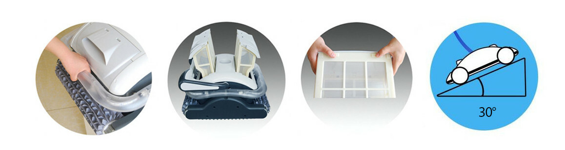 - 3 cycles de nettoyage : 1h - 1.5h - 2h selon le degré de saleté de votre bassin