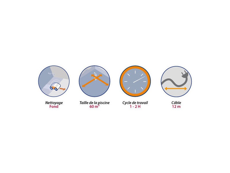 - Il est compatible avec toutes les formes de bassin : rectangulaire, ronde, ovale, forme libre. (Dimensions maximales 10 x 6 m)