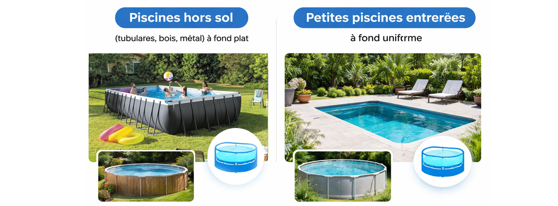 - Piscines de forme ovale ou ronde jusqu'à 9 m de long