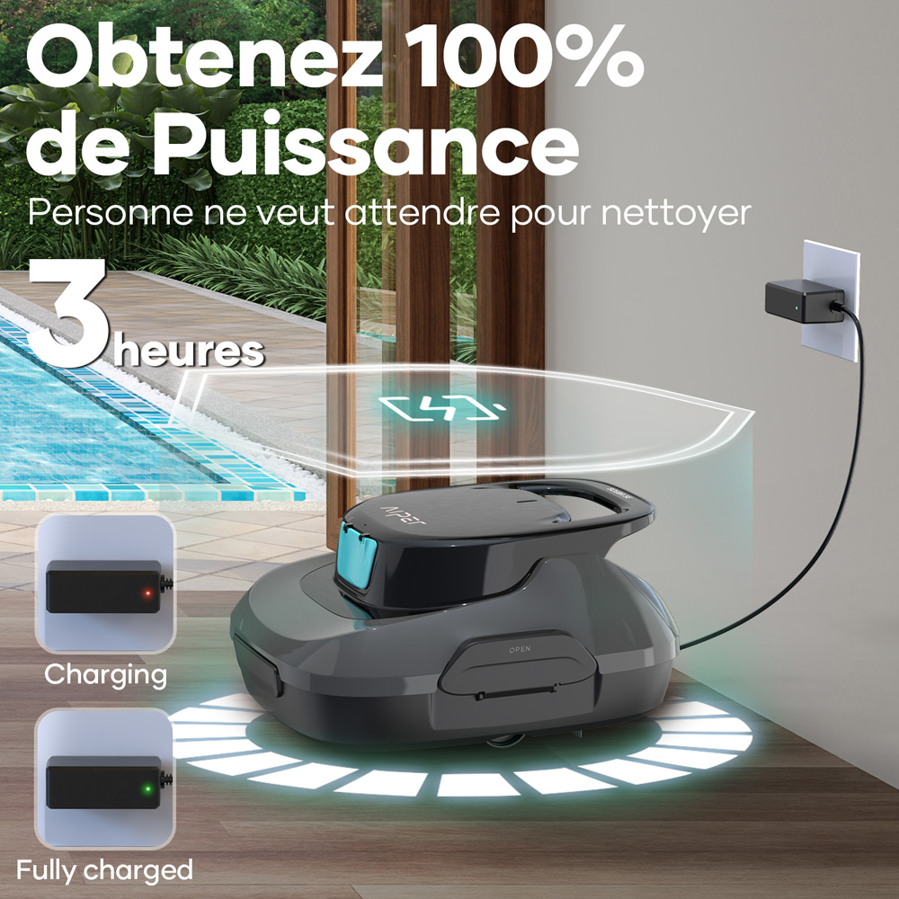 Couvre les piscines jusqu'à 80 m² en une seule charge de 3 heures.
