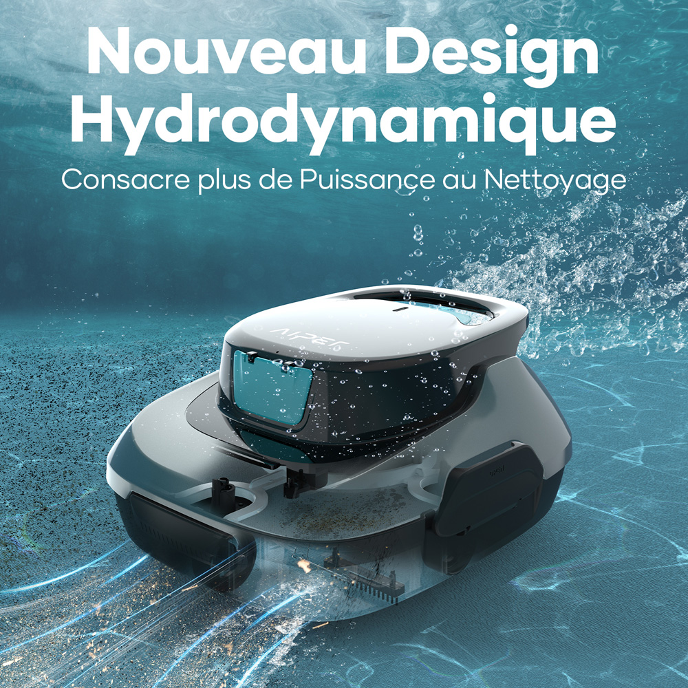 Glisse sur le fond avec moins d'énergie pour maximiser la puissance de nettoyage.