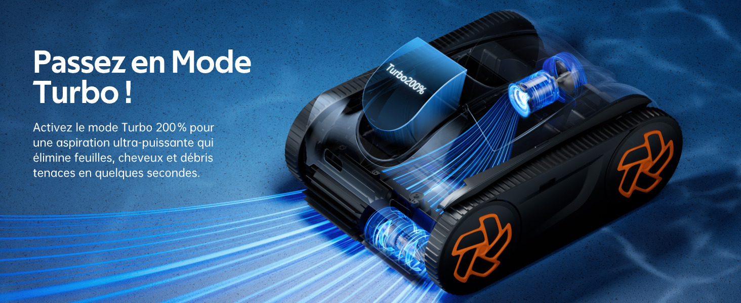 Turbo 200 % activable en un clic pour un nettoyage ciblé rapide