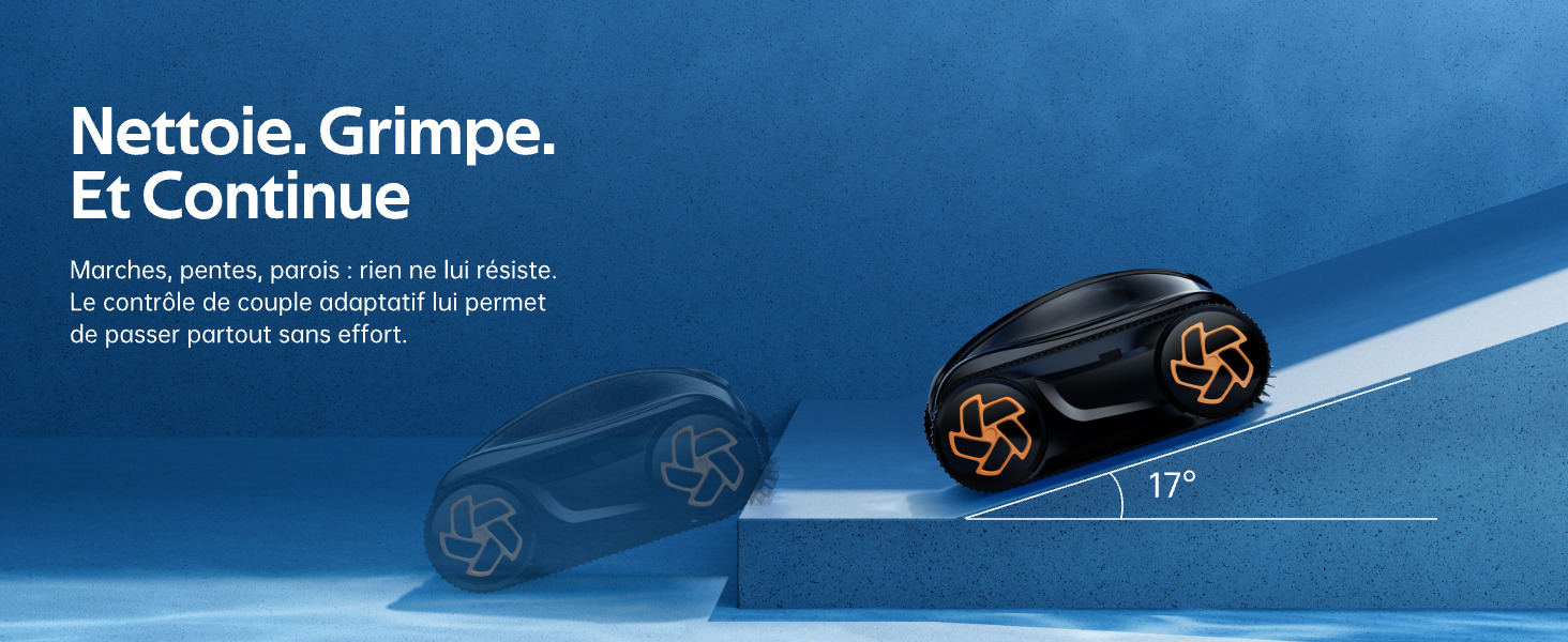 Capacité à franchir deux marches : parfait pour piscines complexes.