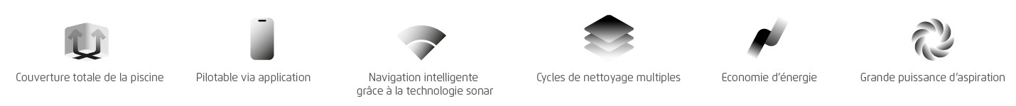 - Navigation intelligente grâce à la technologie Sonar : Une technologie sonar de pointe propulse le robot dans la piscine en empruntant le chemin le plus direct pour économiser de l'énergie. C'est moins de charge nécessaire, pour plus de nettoyage.