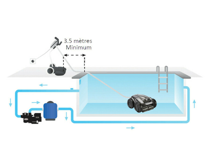 - Disposer le boîtier de commande à une distance minimale de 3.5 m du bord du bassin.