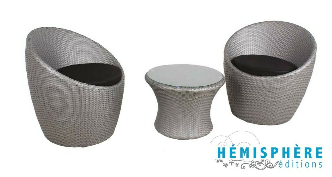 Cet ensemble de jardin Belize dispose de 2 sièges et d'une table de formes arrondies, naturelles et confortables en résine tressée, qui convient particulièrement aux petits espaces !
