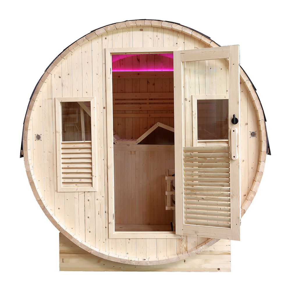 - Accessoires inclus : Livré avec un kit traditionnel en bois comprenant un seau, une louche, un thermomètre et un hygromètre, pour profiter pleinement des rituels du sauna.