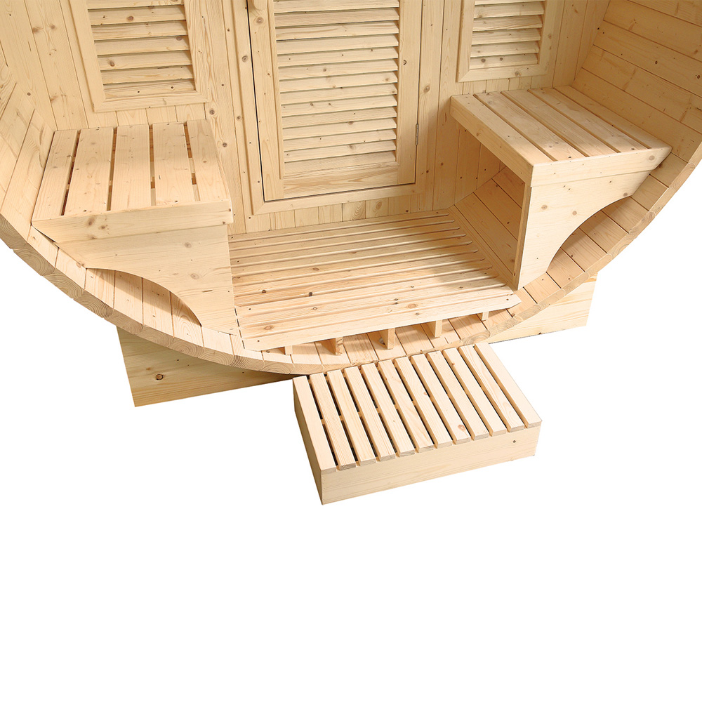 - Accessoires inclus : Livré avec un kit traditionnel en bois comprenant un seau, une louche, un thermomètre et un hygromètre, pour profiter pleinement des rituels du sauna.