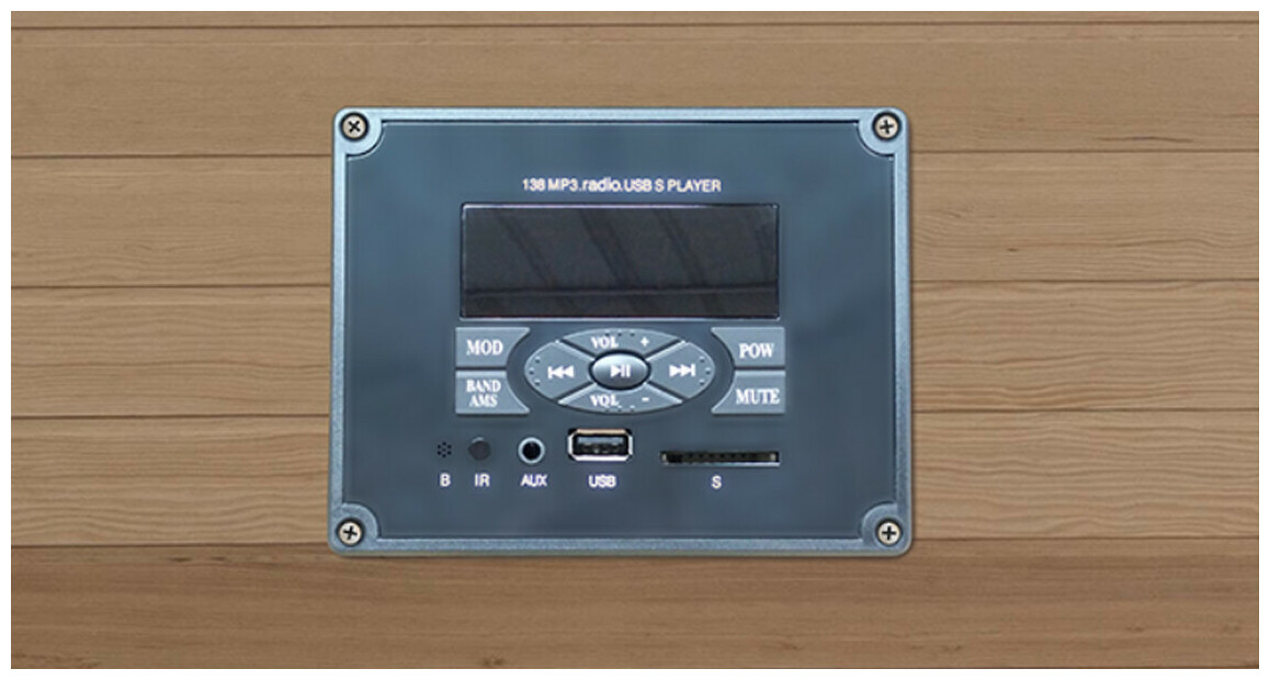 Pour un maximum de détente et de relaxation, le sauna infrarouge quartz Apollon est pourvu d'un système audio qui réuni à la fois la radio et les connexions MP3, Aux, USB, carte mémoire pour la lecture de vos listes de musique personnalisées.