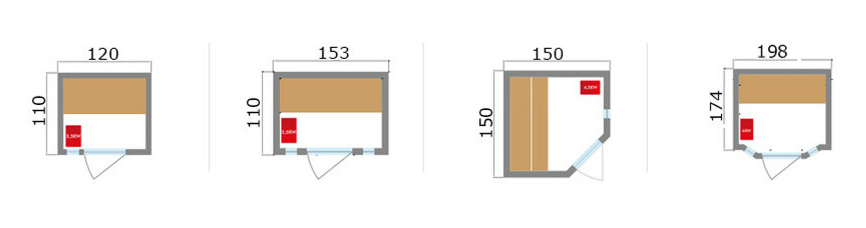 - Installation : Préparez un espace adapté selon les dimensions de votre sauna. Nos modèles varient de 90 cm² pour les petits espaces à 220 x 160 cm pour les grands volumes.