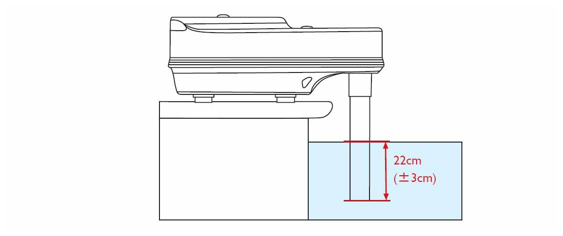 La sonde doit être immergée de 22 cm (± 3cm) pour garantir un fonctionnement optimal.