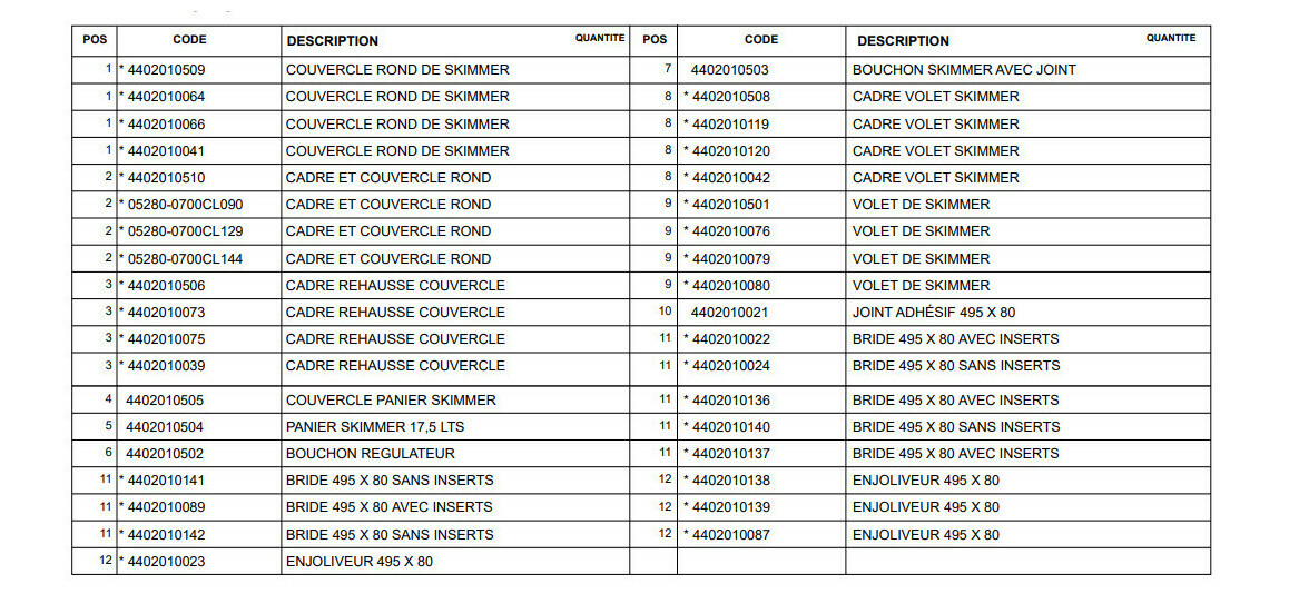 Le skimmer à grande meurtrière est une pièce à sceller indispensable lors de la construction de votre piscine. Il s'emploie comme préfiltre en aspirant les impuretés qui flottent à la surface de l'eau. Son rôle est essentiel dans le circuit de filtration de votre bassin, son choix et son emplacement ne doivent donc pas être pris au hasard. Un skimmer doit être de qualité avec des matériaux qui résistent à la pression, un panier de grande contenance, un clapet anti-retour de réglage et une 2nde sortie (en option).