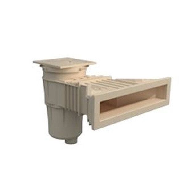 Skimmer pour bassins liner ou bétonde 17,5 l sans inserts , aptes pour une installation en piscines publiques et privées. Fabriqués en ABS avec traitement UV, intègre une vanne, un régulateur de débit, un régulateur en hauteur du couvercle et un panier ramasse-feuilles. Débit recommandé 7,5m³/h. Raccordement inférieurs de 1"1/2 et de 2". Connexion de trop-plein Ø40 mm. Coloris sable.