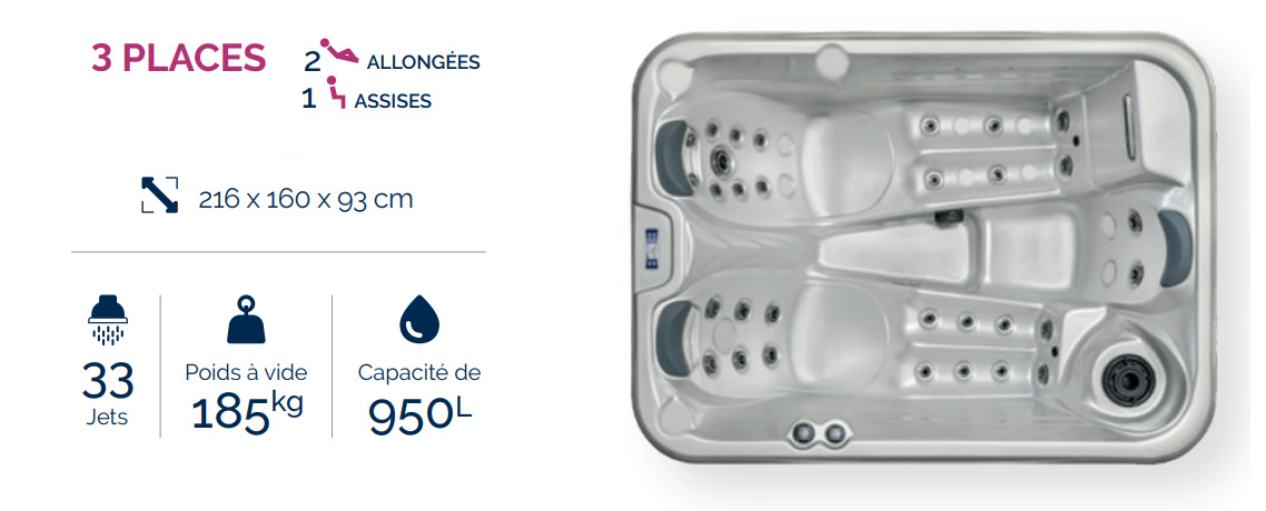 Son design ergonomique et ses équipements haut de gamme, tels que le panneau de contrôle Balboa® TP600, la cuve Lucite® ABS/PMMA, et les buses CMP® inox, garantissent confort et durabilité. La couverture thermique incluse assure une isolation optimale, permettant de maintenir la température de l'eau et de réaliser des économies d'énergie.