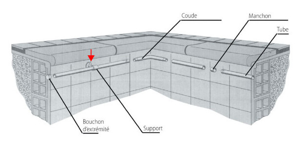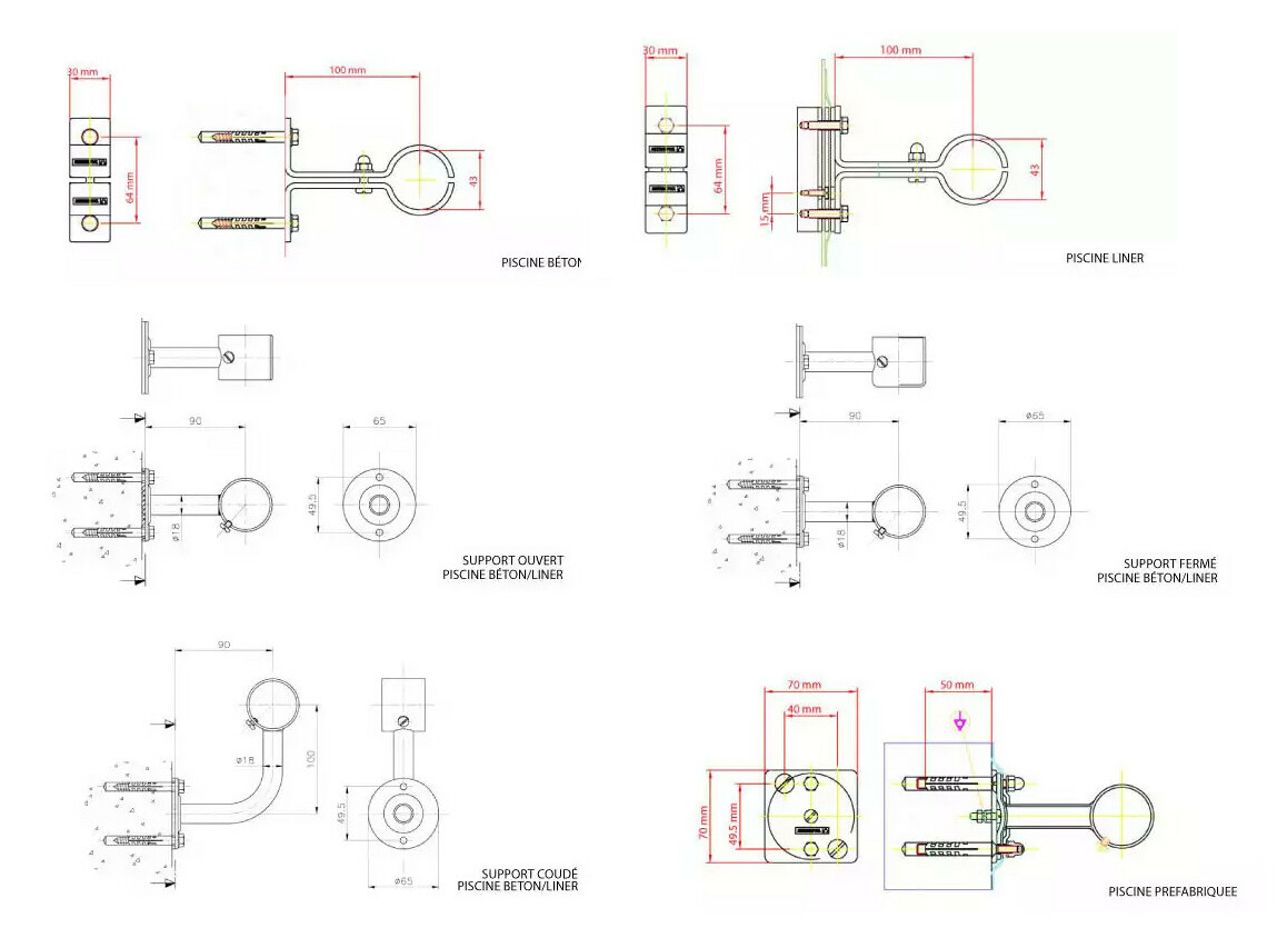 Pour installer votre rampe sur le périmètre interne de la piscine, il est nécessaire d'utiliser des supports de fixation.