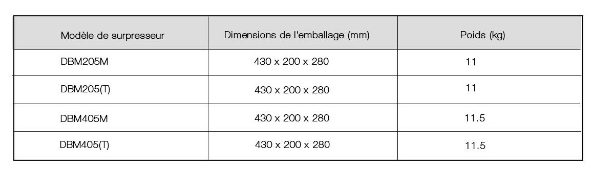 Remarque : Le modèle DBM204 remplace désormais le DBM205.