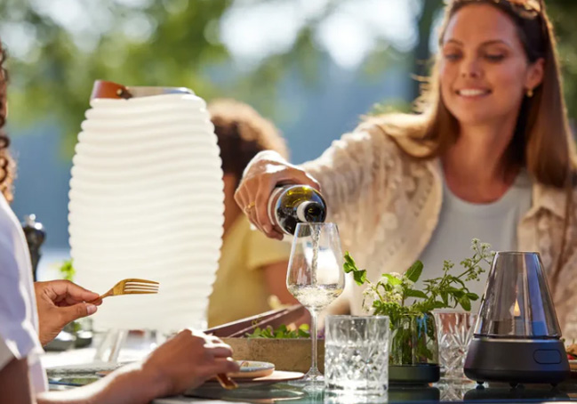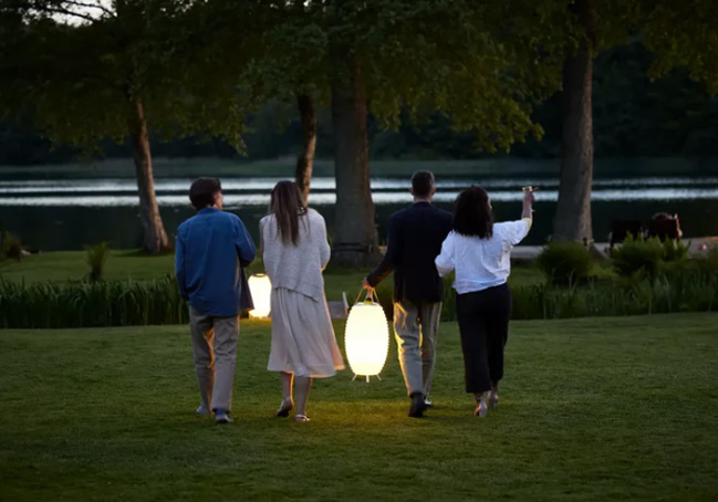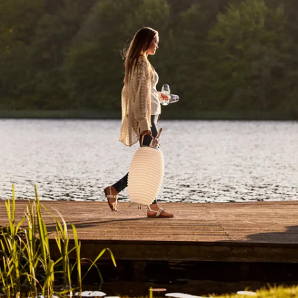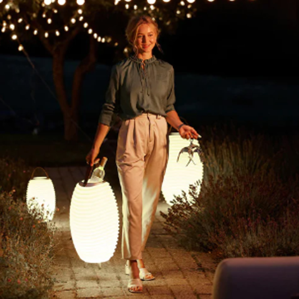 Il s'intègre aussi bien en intérieur qu'en extérieur, devenant à la fois objet déco, source