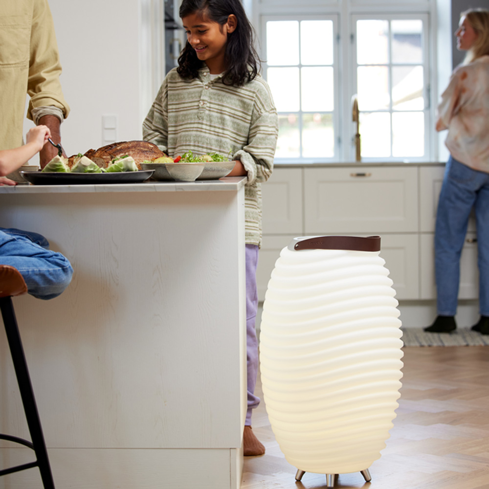 Matin, midi, soir... qu'il fasse beau ou gris, la lampe enceinte Synergy
