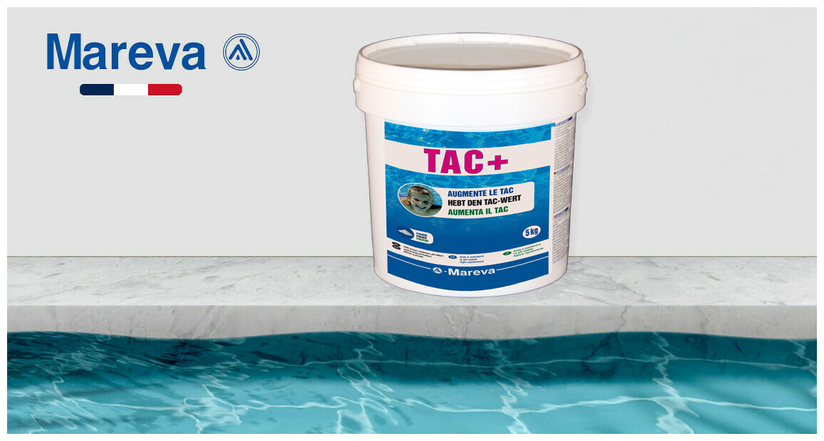 Le Tac est crucial pour maintenir un pH équilibré. Mareva Tac + augmente le Tac dans l'eau de la piscine, ce qui est important car un Tac trop bas peut rendre l'eau agressive et instable en pH. La valeur idéale de Tac est entre 8°f et 12°f.