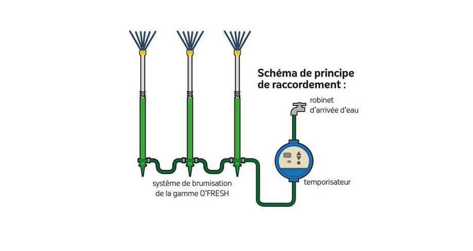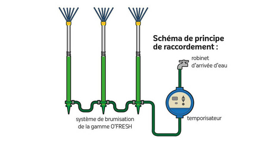 - Se branche directement entre le tuyau d'arrosage et le brumisateur.