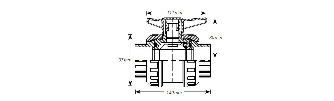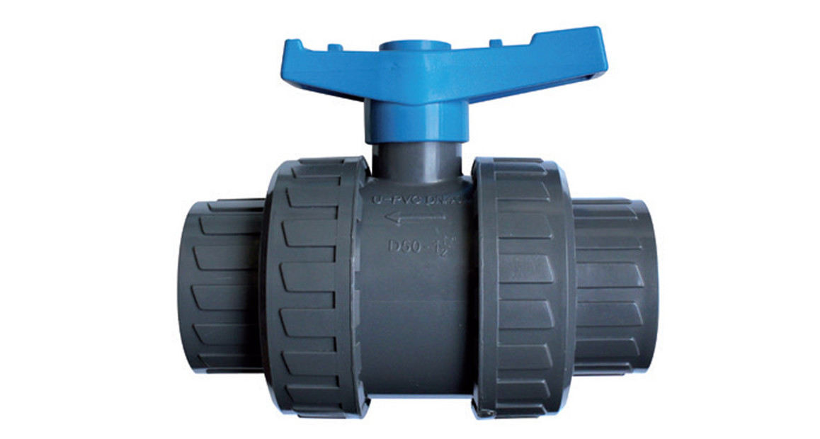 Vanne PVC femelle à coller, double union, avec siège de bille réglable. Disponible en 2 diamètres. La vanne a pour fonction de contrôler la circulation de l'eau dans le tuyau sur lequel elle est posée (ouverture/fermeture de la vanne par poignée). Vanne utilisée pour les by-pass en 50.