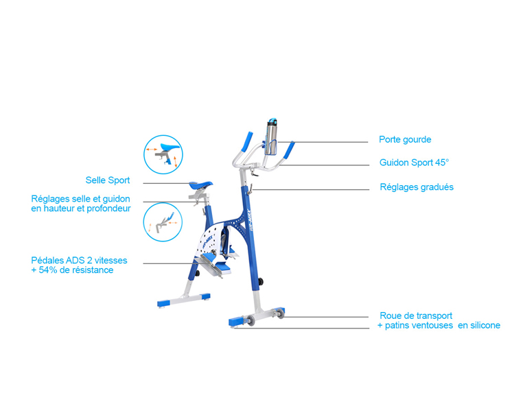 Il consiste à pédaler sur un vélo plongé dans une piscine de façon à profiter des bienfaits de l'eau et vous permet ainsi de :