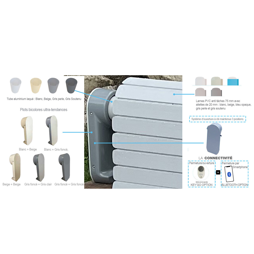 - 2 poteaux aluminium bicolores et laqués blanc, beige, gris perle ou gris soutenu à fixer sur les margelles