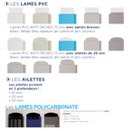 - 1 ensemble de lames PVC 75 mm de large avec bouchons obturateurs à ailettes (montage usine 20 mm) ou à brosses (interchangeables en option)