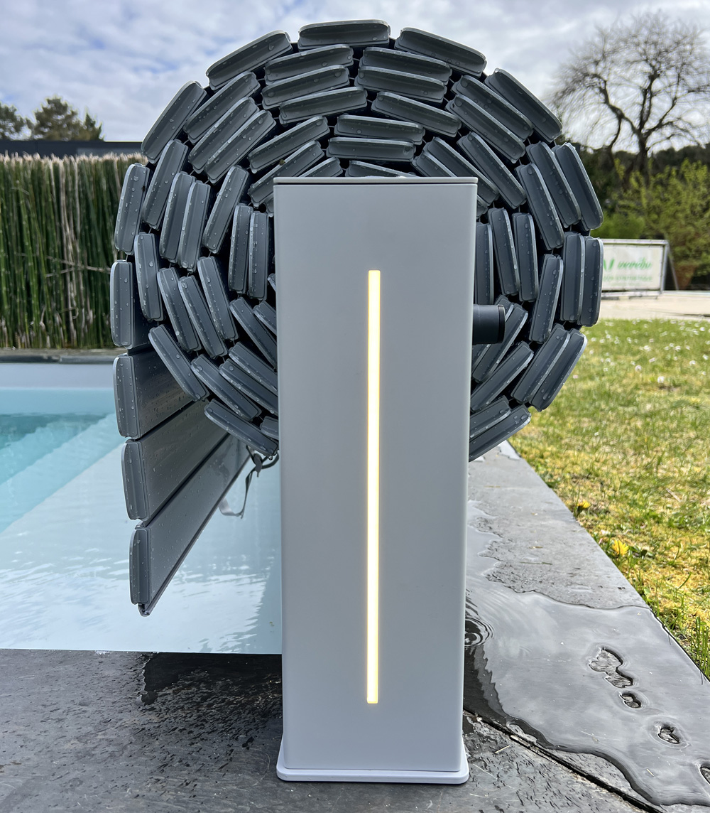 En plus de son esthétique élégant, le pied du One offrent la possibilité d'être illuminés par des LEDS, une option incontournable du volet One ! Son plot LED apportera une touche de luminosité et de caractère à votre extérieur. Même la nuit, votre piscine et votre jardin seront sublimés !