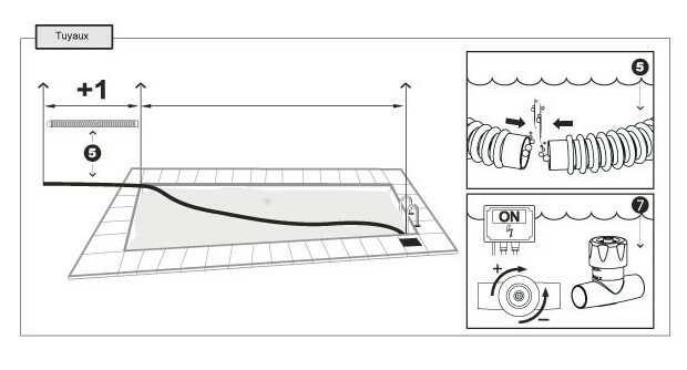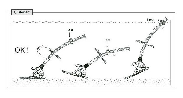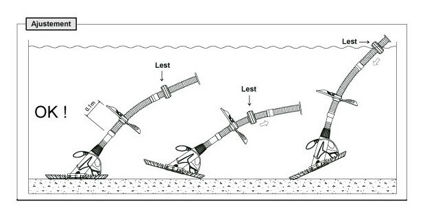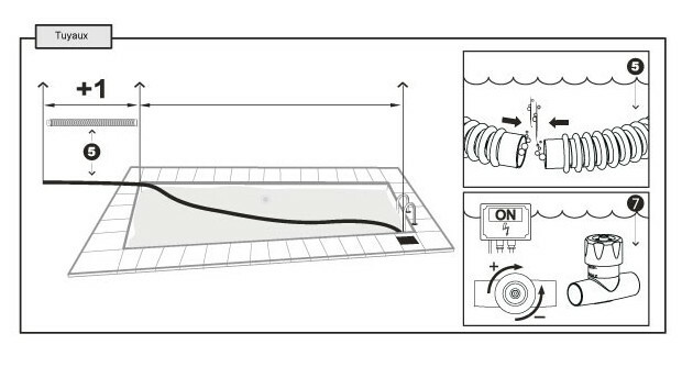 Il faut ajuster leur position de manière à ce que le disque à ailerons soit positionné à plat sur la surface et circule correctement sur toutes les parois du bassin.