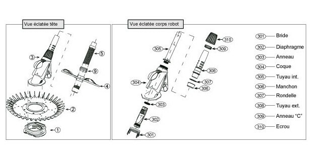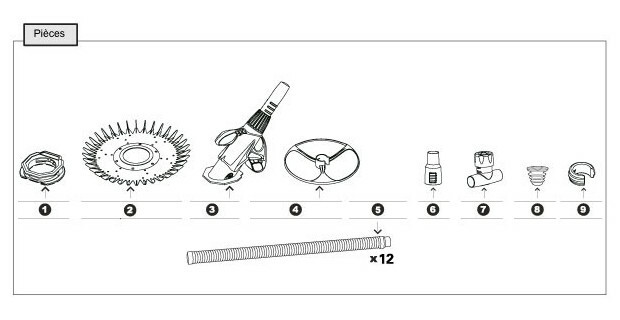 - Son diaphragme qui garantit l'aspiration des débris vers le panier du préfiltre de la pompe.